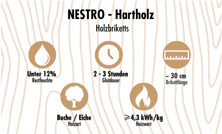 Hartholzbriketts. Buche & Eiche für dauerhafte Wärme.
